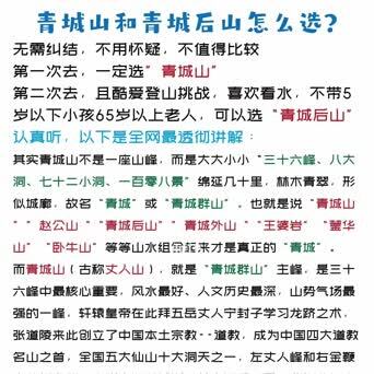 【青城山和青城后山怎么选,怎么玩?】青城山和青城后山都爬过很多次,看到很多朋友被网文误导弄不清楚二者区别,斗胆给大家介绍一下。