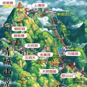 青城山主要是看山看文化,路线不复杂,跟着我推荐路线走就行。我建议青城山和都江堰一天玩,所以不推荐步行上山索道下山